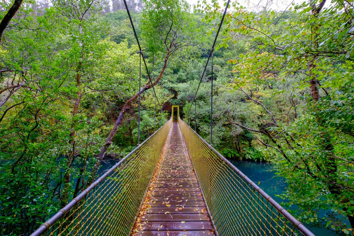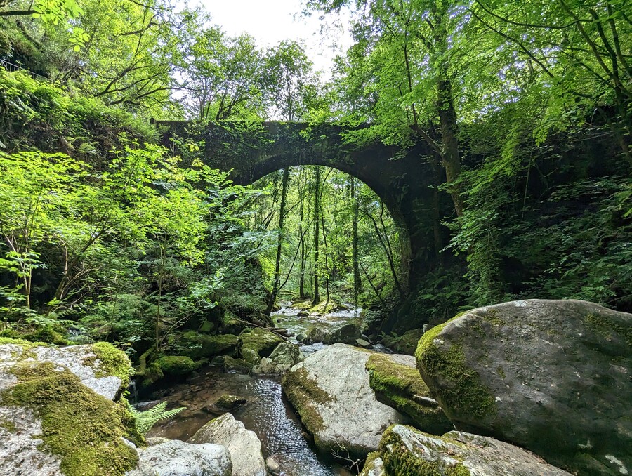 La ruta nos adentra en el corazón del cañón del Eume, recorriendo un cómodo sendero junto al río y acompañados del sonido del agua en todo momento. El punto más destacado de este entorno es el Monasterio de Caaveiro, enclavado en plena fraga y rodeado de vegetación. Este paraje nos invita a imaginar historias de duende y meigas, tan propias de la tradición gallega.